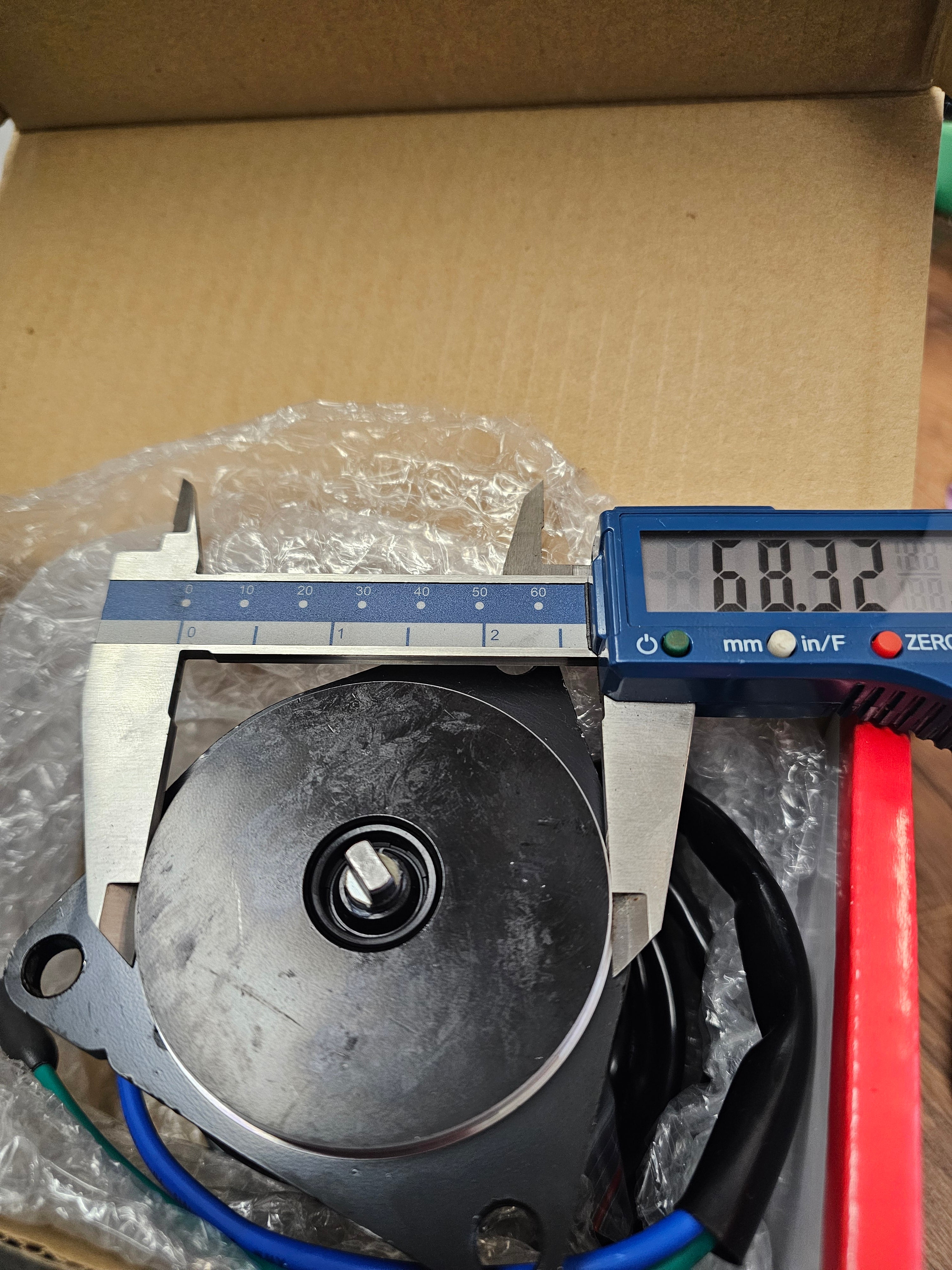 - Mounting Flange measures 68.3mm in diameter and Armature shaft flat blade is 4mm thick