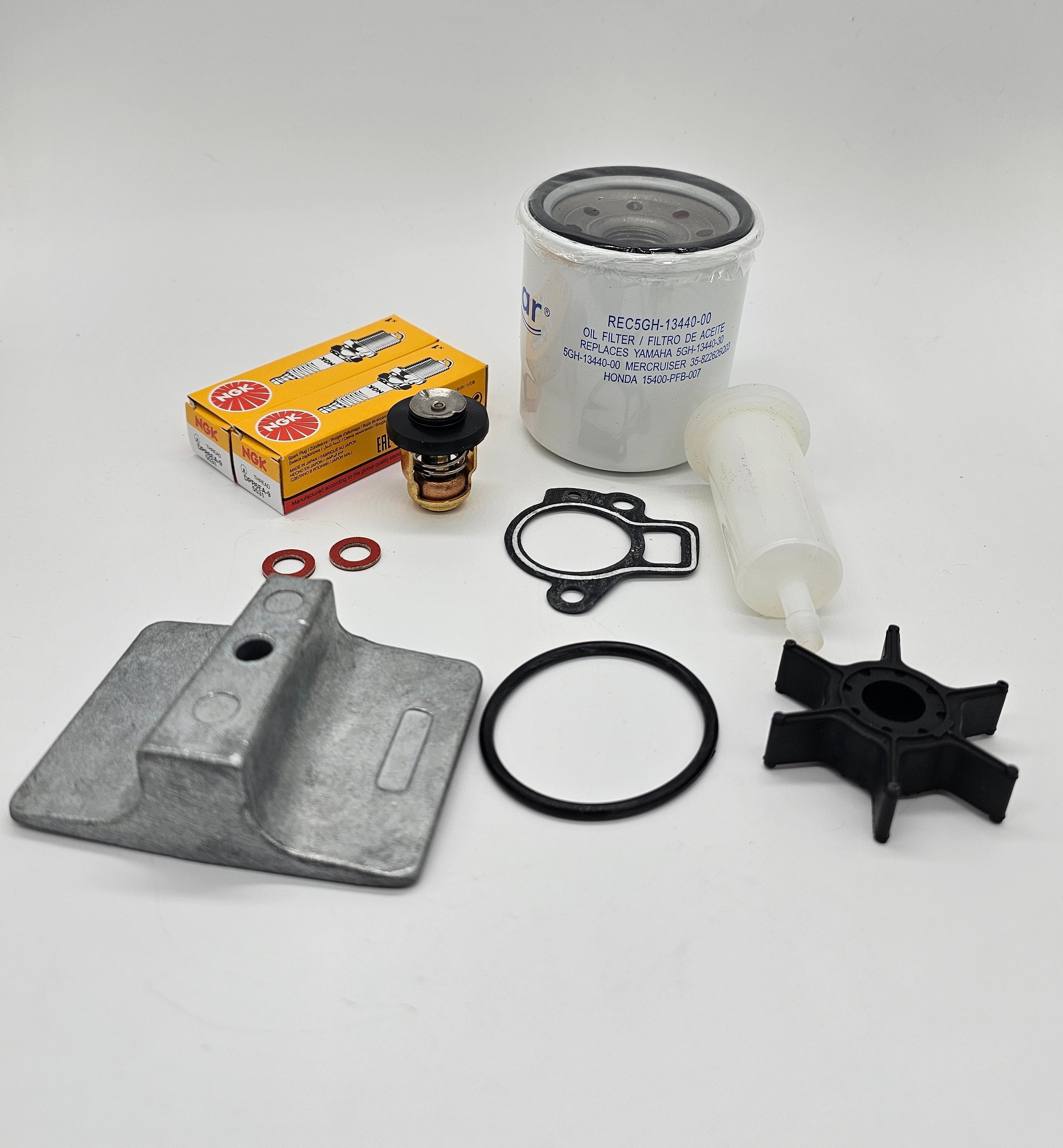 Each kit includes a carefully selected mix of high-quality aftermarket and genuine parts, sourced from trusted marine suppliers and approved in our workshop.